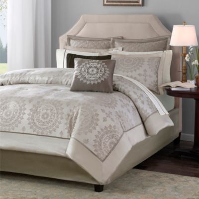 Hampton Hill Comforter Set: Hampton hill canovia springs bedding features a jacquard pattern in shades of chocolate, copper and blue perfect for your elegant bedroom.
